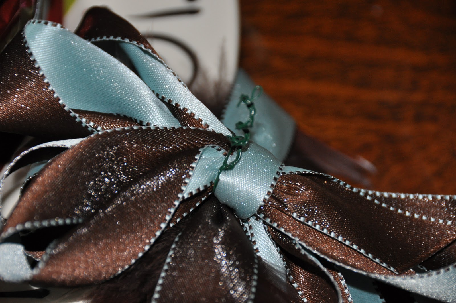 Tie a small piece of floral wire to the bottom of a ribbon bow. Attach the bow by wrapping the wire around the toothpick.